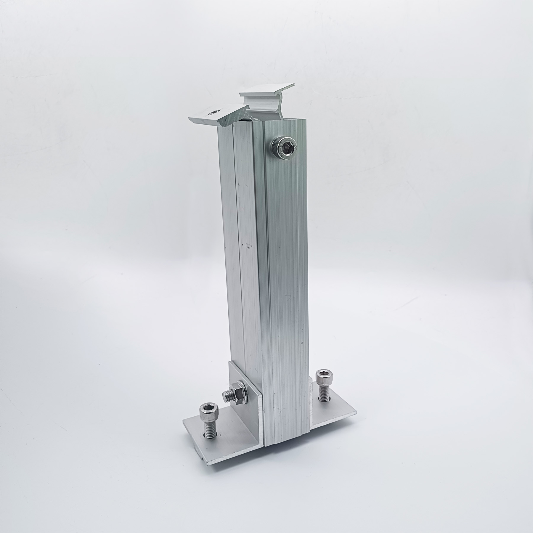Die Solarklemme ist ein weiteres Aluminiumzubehör, mit dem Solarmodule an Aluminiumschienen befestigt werden. Die Halterung besteht normalerweise aus einer Aluminiumlegierung, die eine hohe Festigkeit und Korrosionsbeständigkeit aufweist, wodurch sichergestellt werden kann, dass die Solarmodule nicht beschädigt oder verdreht werden.