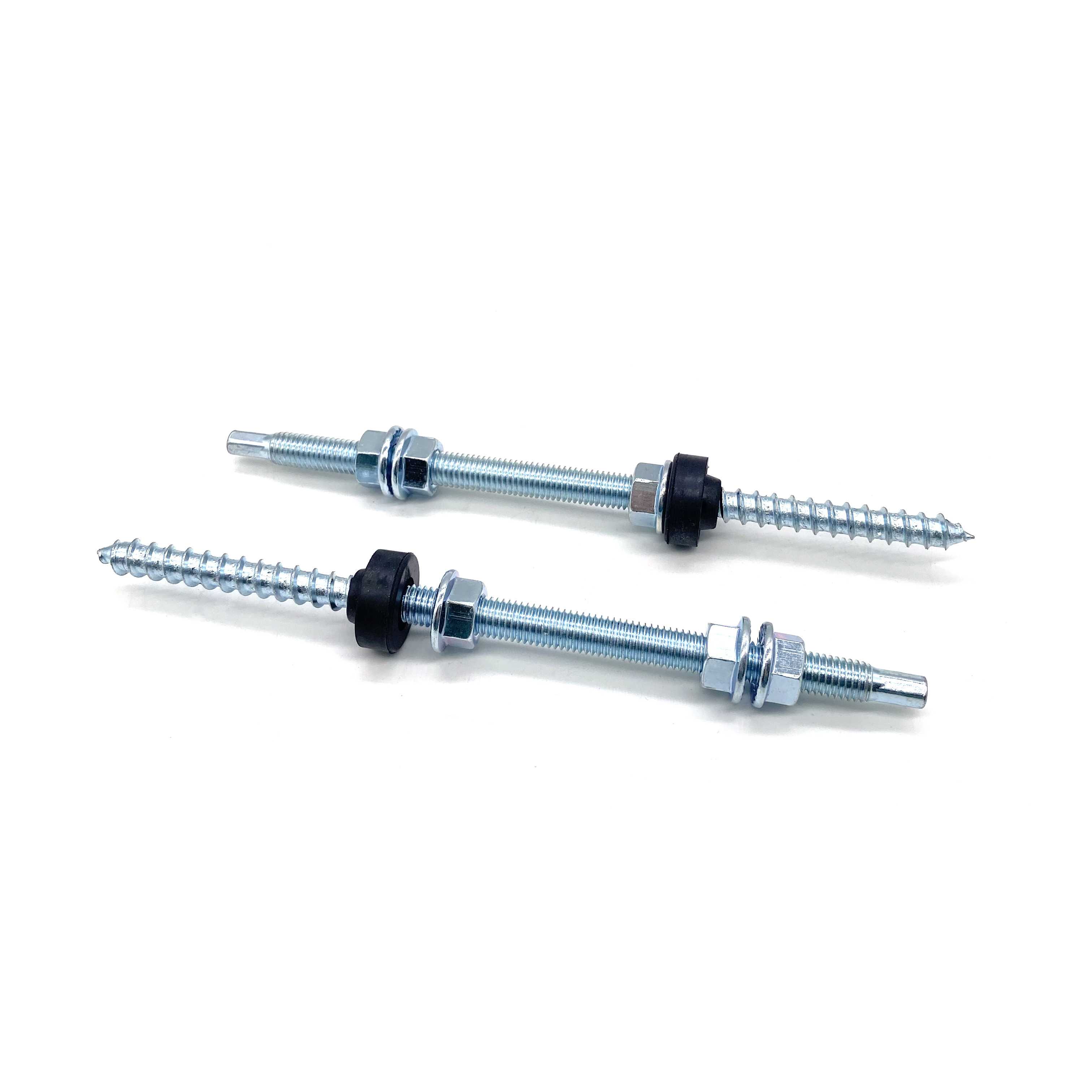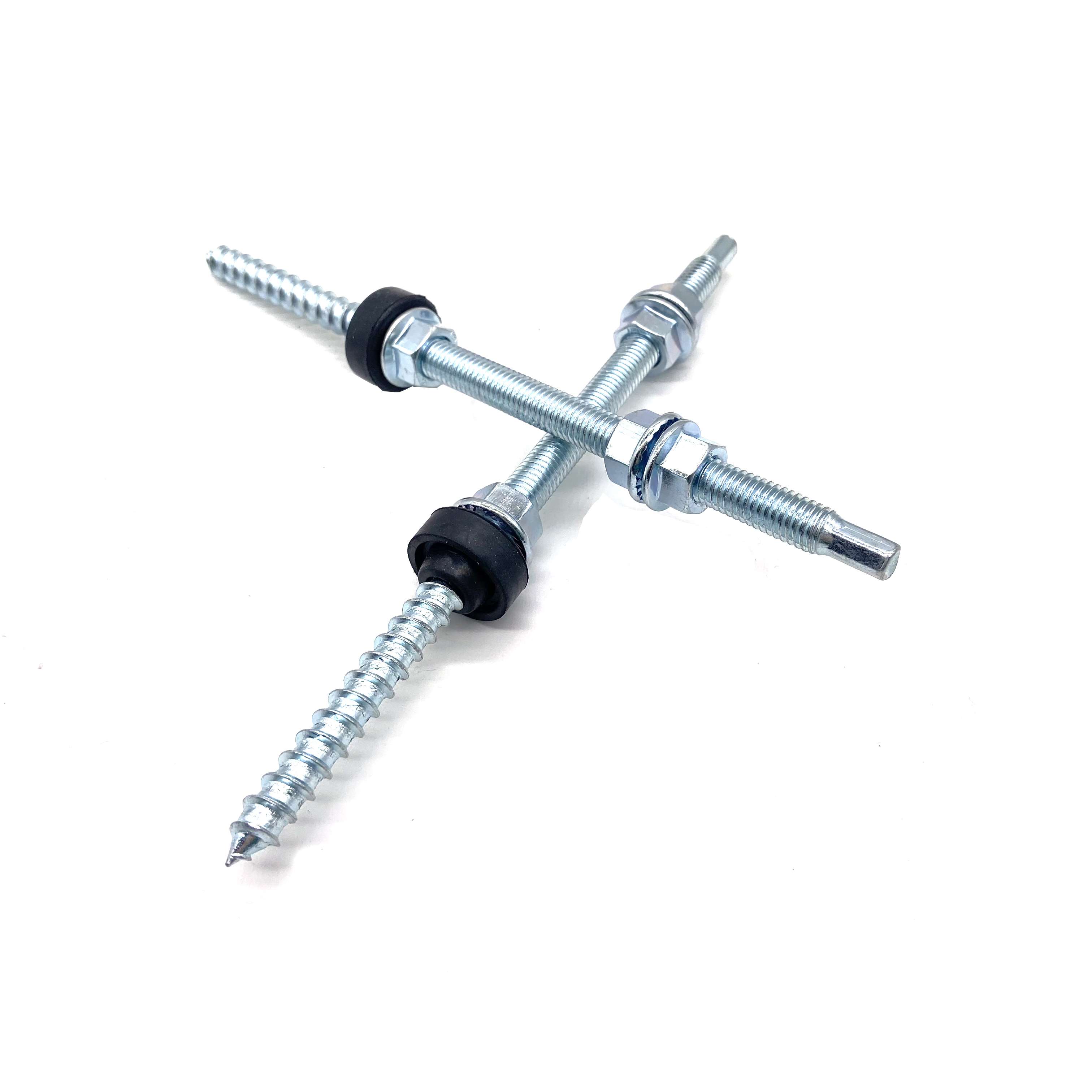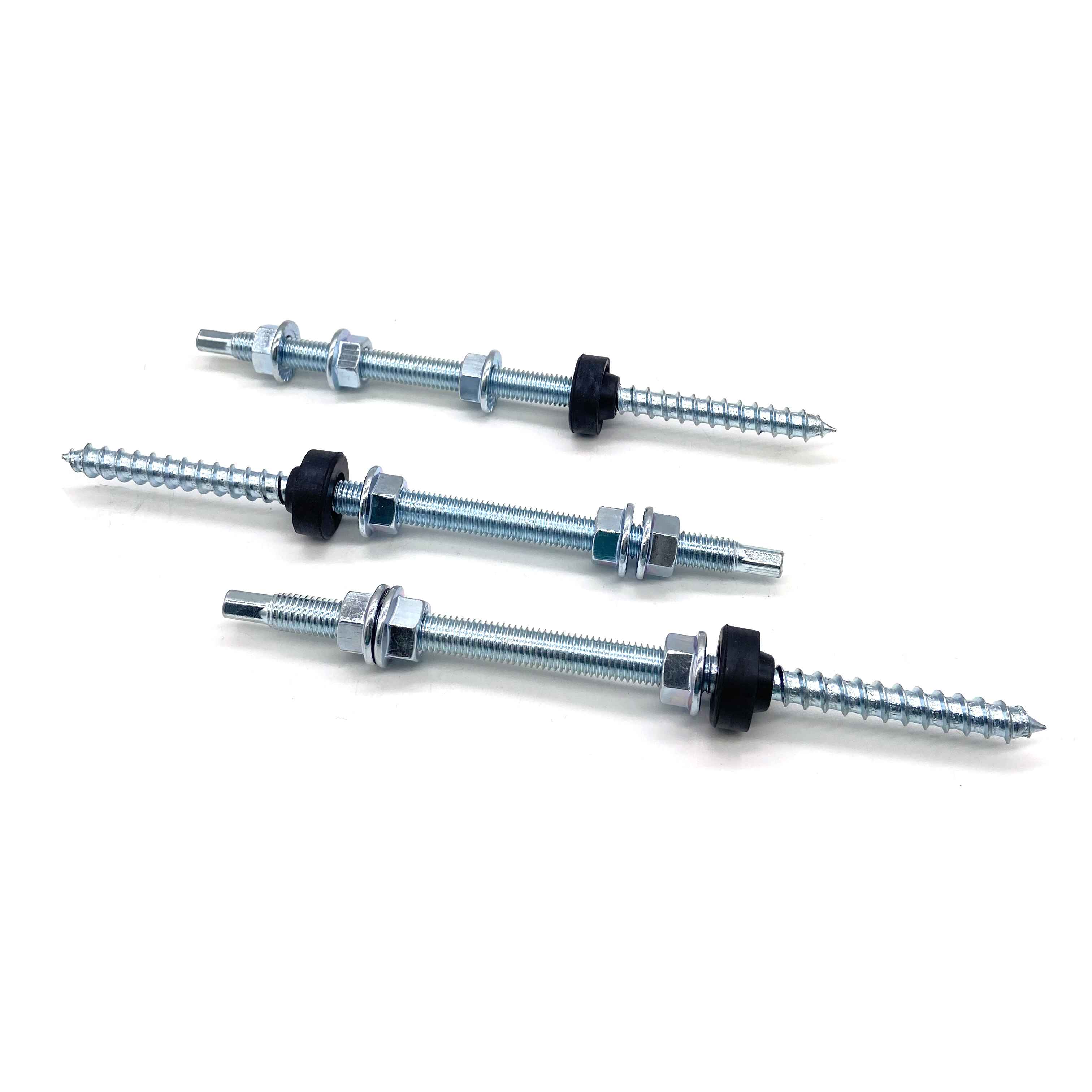 Stockschrauben sind ein häufig verwendetes Zubehör für Solardachmontagesysteme. Sie bestehen aus Edelstahl und eignen sich für die Installation auf Wellblechdächern, trapezförmigen Stahlziegeln, Asbestziegeln usw. Die Stehbolzen bestehen aus Edelstahl 304 mit M10-Flanschmuttern EPDM-Unterlagen, dadurch geeignet für die Montage auf Holz- und Stahlträgern.Beide Arten von L-Füßen oder verstellbaren Platten können zusammen verwendet werden.