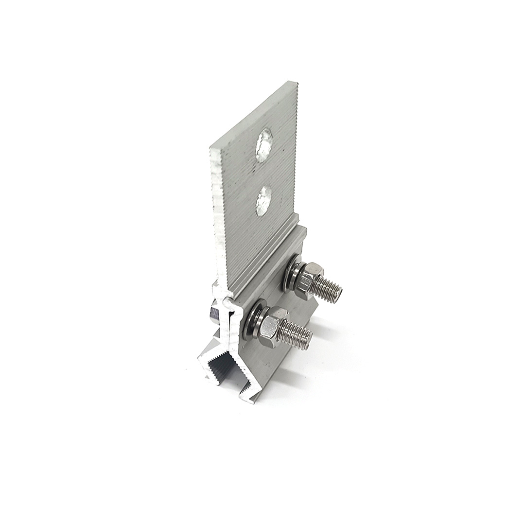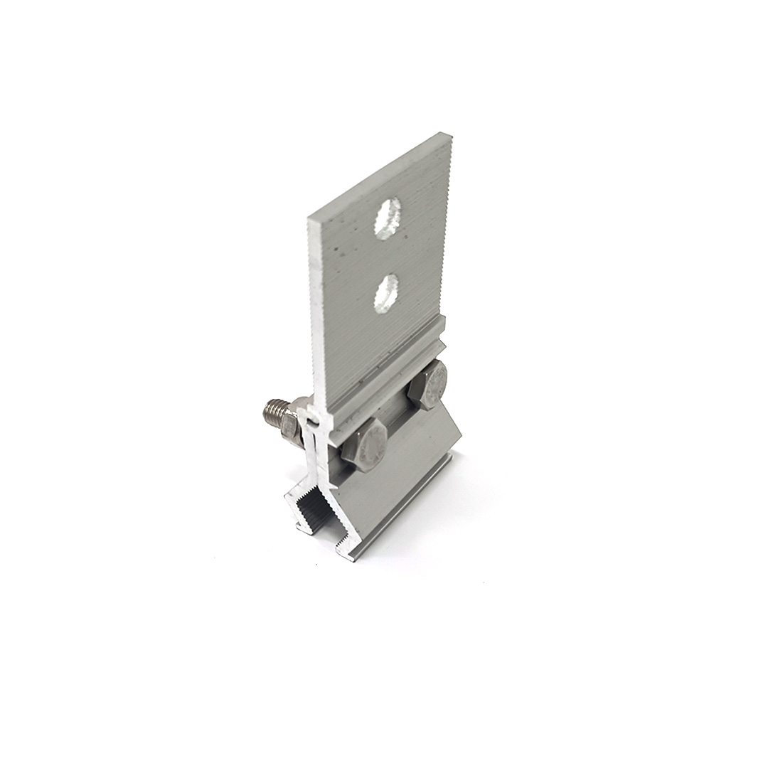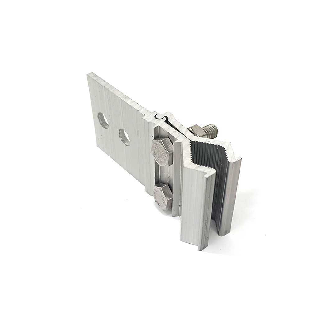 Die Solarklemme ist ein weiteres Aluminiumzubehör, mit dem Solarmodule an Aluminiumschienen befestigt werden. Die Halterung besteht normalerweise aus einer Aluminiumlegierung, die eine hohe Festigkeit und Korrosionsbeständigkeit aufweist, wodurch sichergestellt werden kann, dass die Solarmodule nicht beschädigt oder verdreht werden.