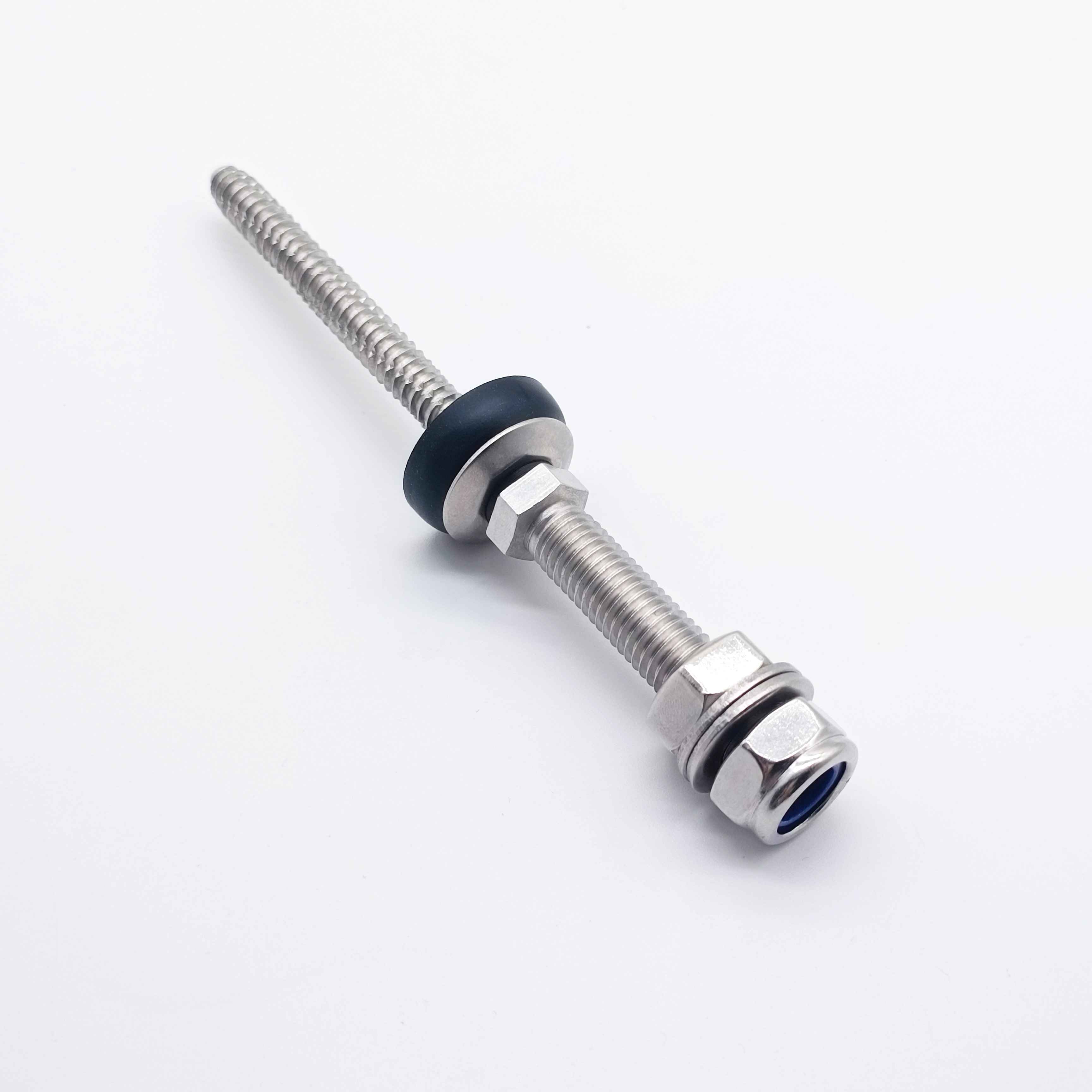 Stockschrauben sind ein häufig verwendetes Zubehör für Solardachmontagesysteme. Sie bestehen aus Edelstahl und eignen sich für die Installation auf Wellblechdächern, trapezförmigen Stahlziegeln, Asbestziegeln usw. Die Stehbolzen bestehen aus Edelstahl 304 mit M10-Flanschmuttern EPDM-Unterlagen, dadurch geeignet für die Montage auf Holz- und Stahlträgern.Beide Arten von L-Füßen oder verstellbaren Platten können zusammen verwendet werden.