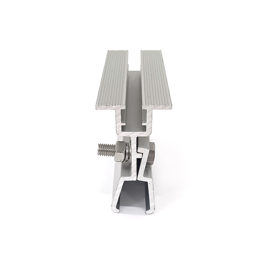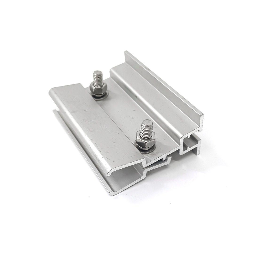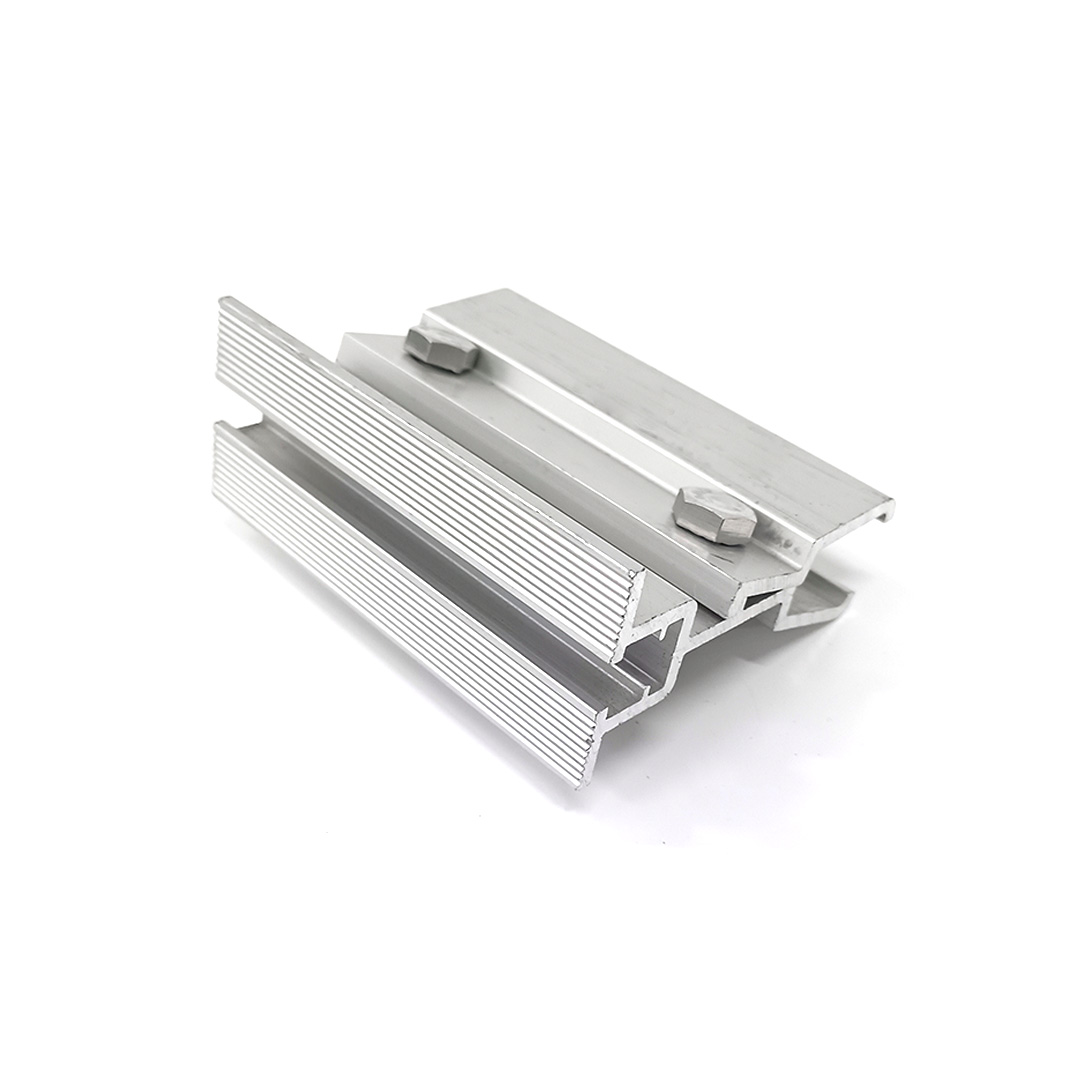 Die Solarklemme ist ein weiteres Aluminiumzubehör, mit dem Solarmodule an Aluminiumschienen befestigt werden. Die Halterung besteht normalerweise aus einer Aluminiumlegierung, die eine hohe Festigkeit und Korrosionsbeständigkeit aufweist, wodurch sichergestellt werden kann, dass die Solarmodule nicht beschädigt oder verdreht werden.