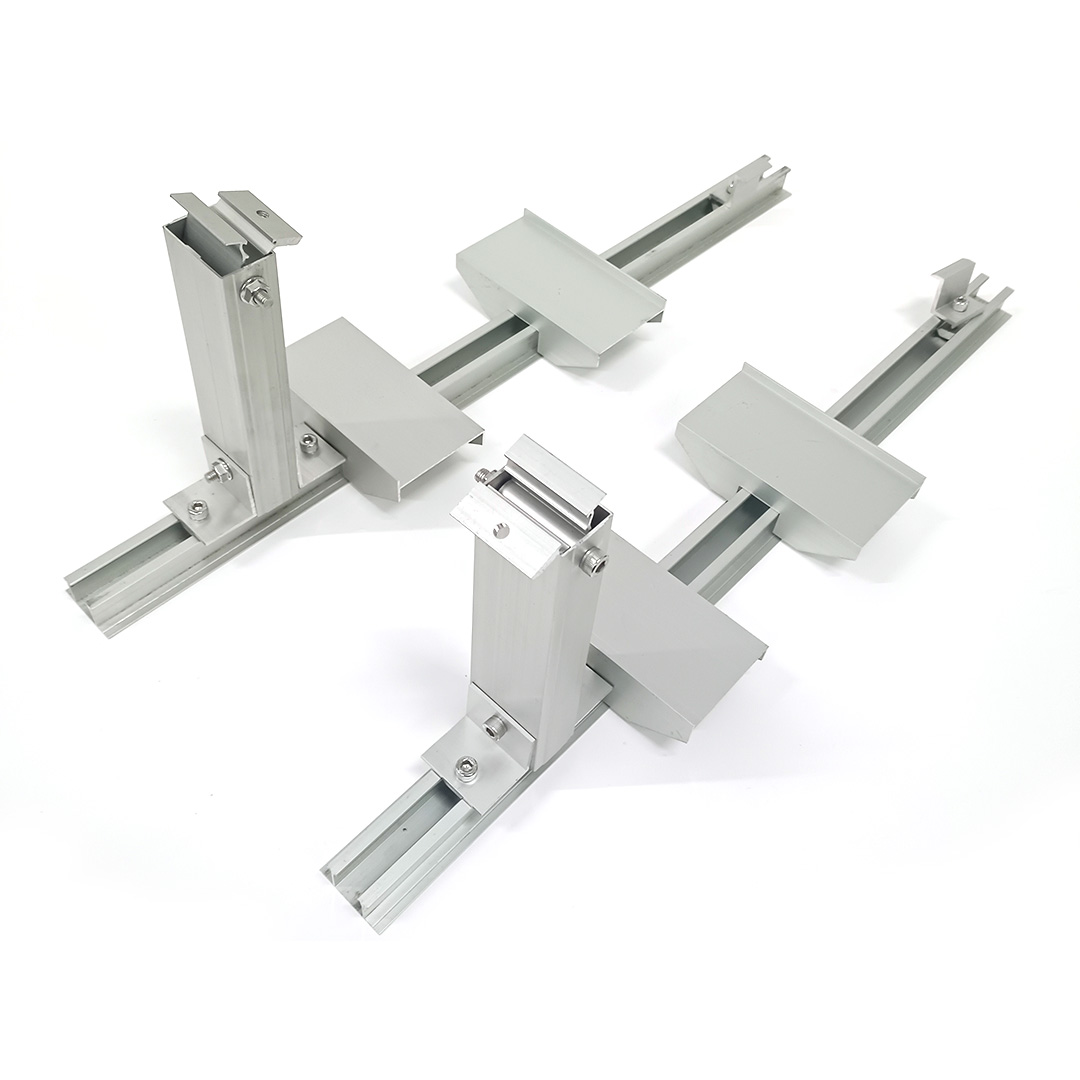 Flachdach Das Halterungssystem ist ein Solar-Photovoltaik-Halterungssystem, das für Flachdächer geeignet ist. Das System besteht hauptsächlich aus Säulen, Trägern, Diagonalstreben, Führungsschienen, verzinkten C-Stahlkanälen und anderen Komponenten und zeichnet sich durch einfache Struktur, bequeme Installation und hohe Tragfähigkeit aus.