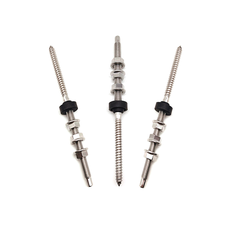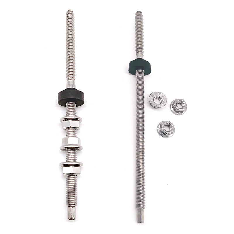 Stockschrauben sind ein häufig verwendetes Zubehör für Solardachmontagesysteme. Sie bestehen aus Edelstahl und eignen sich für die Installation auf Wellblechdächern, trapezförmigen Stahlziegeln, Asbestziegeln usw. Die Stehbolzen bestehen aus Edelstahl 304 mit M10-Flanschmuttern EPDM-Unterlagen, dadurch für die Montage auf Holz- und Stahlträgern geeignet.Beide Arten von L-Füßen oder verstellbaren Platten können zusammen verwendet werden.
