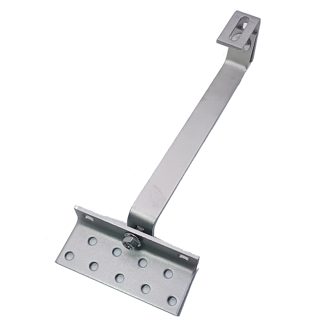 Das Design von Solarhaken wird normalerweise in zwei Typen unterteilt: Der eine ist ein fester Haken und der andere ist ein verstellbarer Haken. Feste Haken werden häufig verwendet, um Solarmodule in einer Position zu befestigen, während verstellbare Haken je nach Bedarf angepasst werden können, um verschiedene Winkel und Höhen zu berücksichtigen.